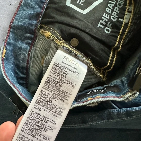 Experience comfort and style with RVCA men's blue jeans. Perfect for any casual occasion.SIZE:28MEASUREMENTS:Inseam: 31”Rise: 8”Waist: 14”Measurements are approximate with the item laying flat.CONDITION:Brand new with tags! No rips, flaws or stains. These are a really nice pair of denim jeans!SHIPPING:Fast shipping! Shipped out same day or next day!Item#076